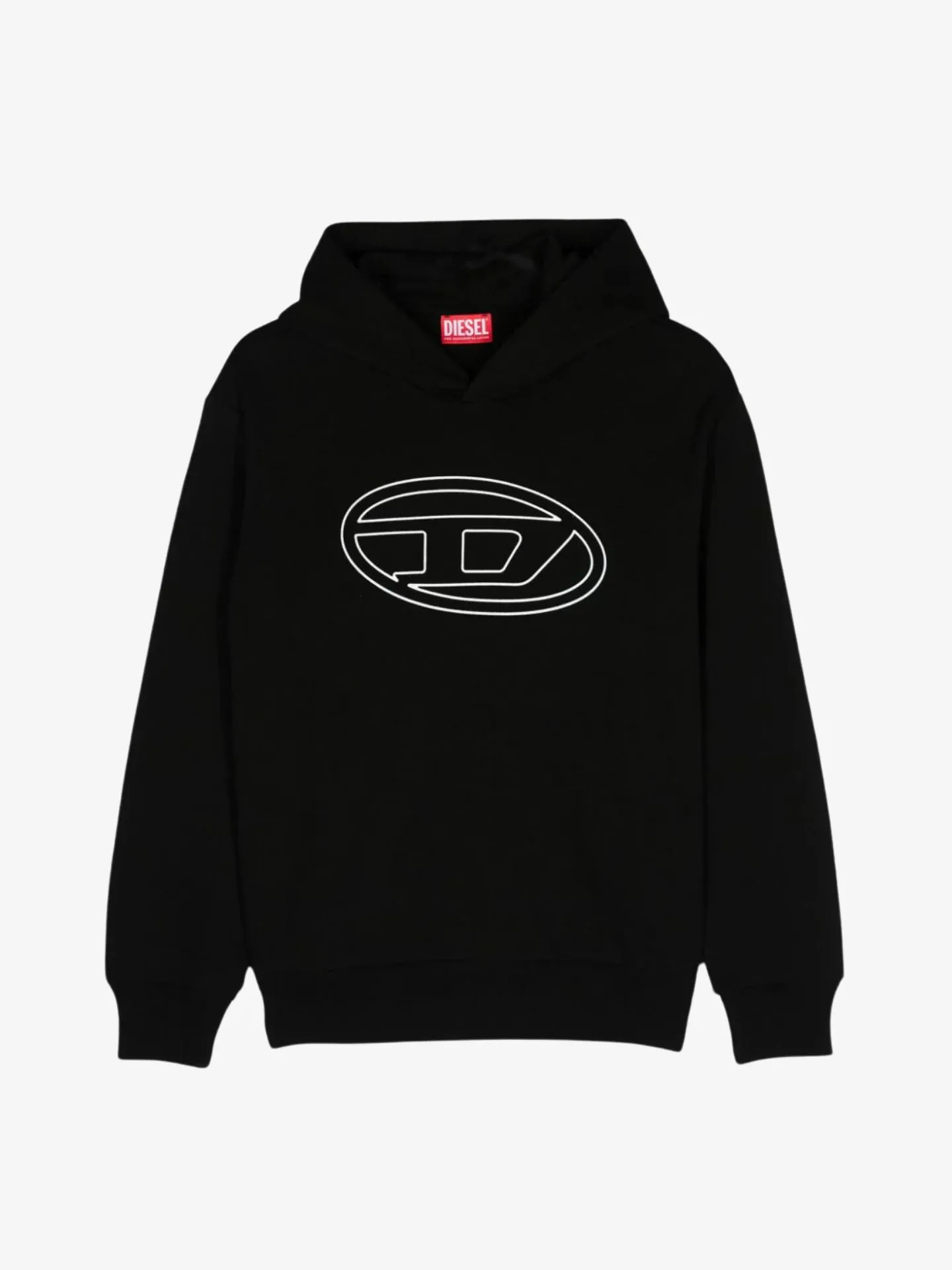 De Diesel Kids Sbigovalhood Hoodie in Zwart heeft een 3D logo aan de voorkant in het wit. Combineer de hoodie met de bijpassende Diesel joggingbroek. Let op: Dit item valt ruim, wij raden een maat kleiner aan.