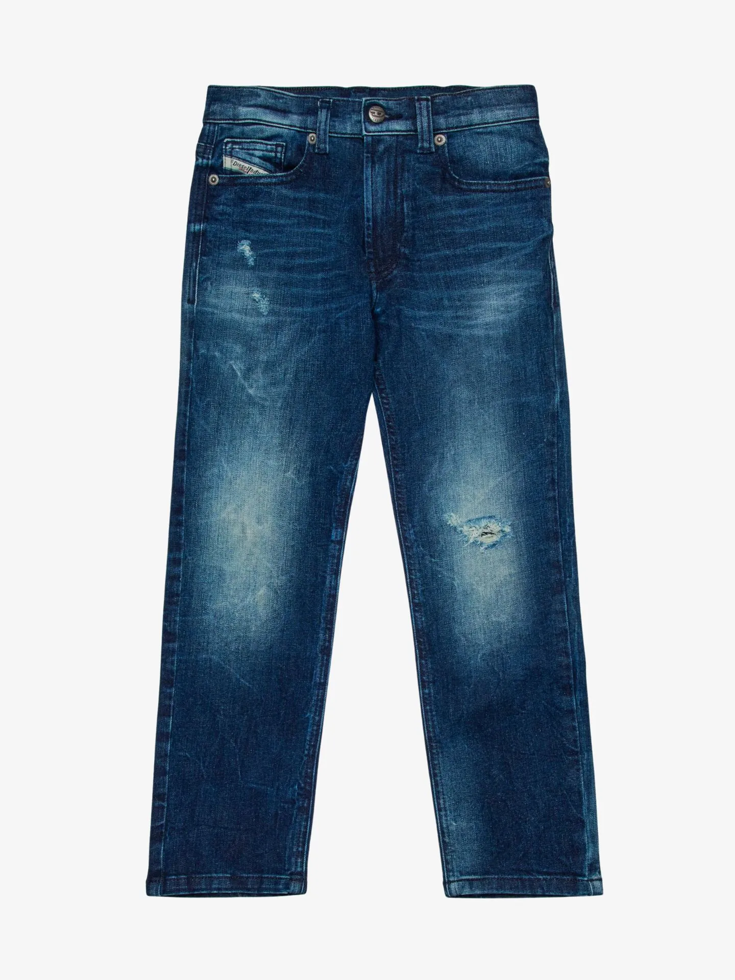De Diesel Junior 2010-j Spijkerbroek heeft een slim fit pasvorm, is een 5-pocket model, heeft een rits- en knoopsluiting, donkere wassing met gescheurde plekken.