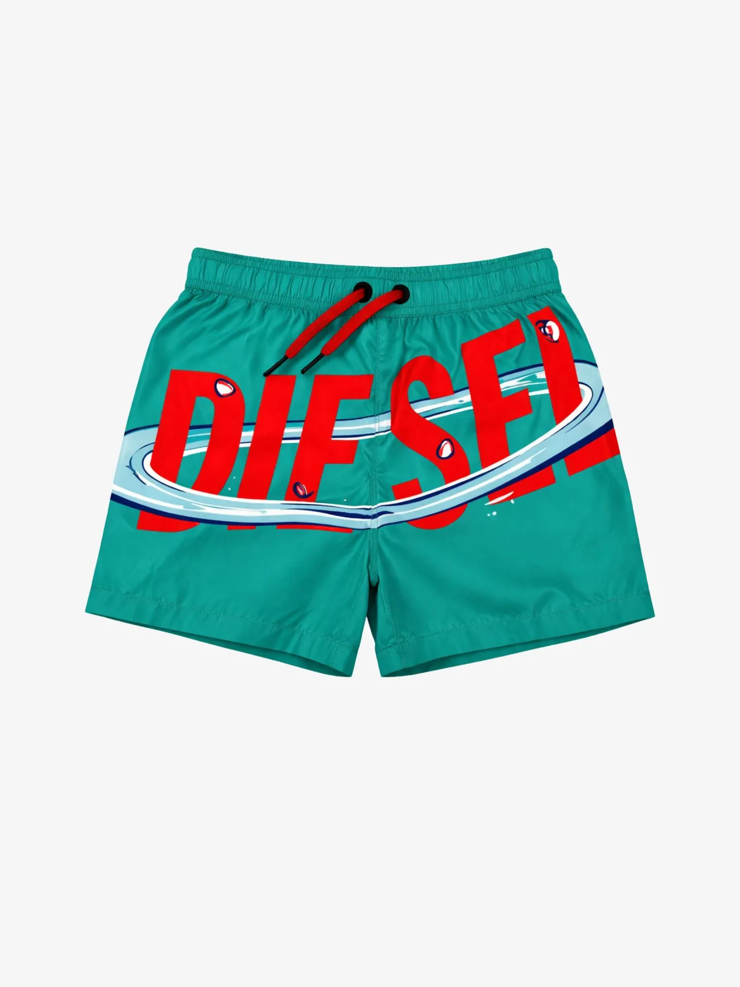 Zwemshort gemaakt van een luchtige en sneldrogende stof. Ontworpen met een elastische tailleband en rode trekkoorden voor een perfecte pasvorm. Voorzien van een opvallend rood DIESEL logo en een kleurrijke astronaut-ring graphic. Combineer met het bijpassende t-shirt en witte sneakers voor een stoere zomerlook.