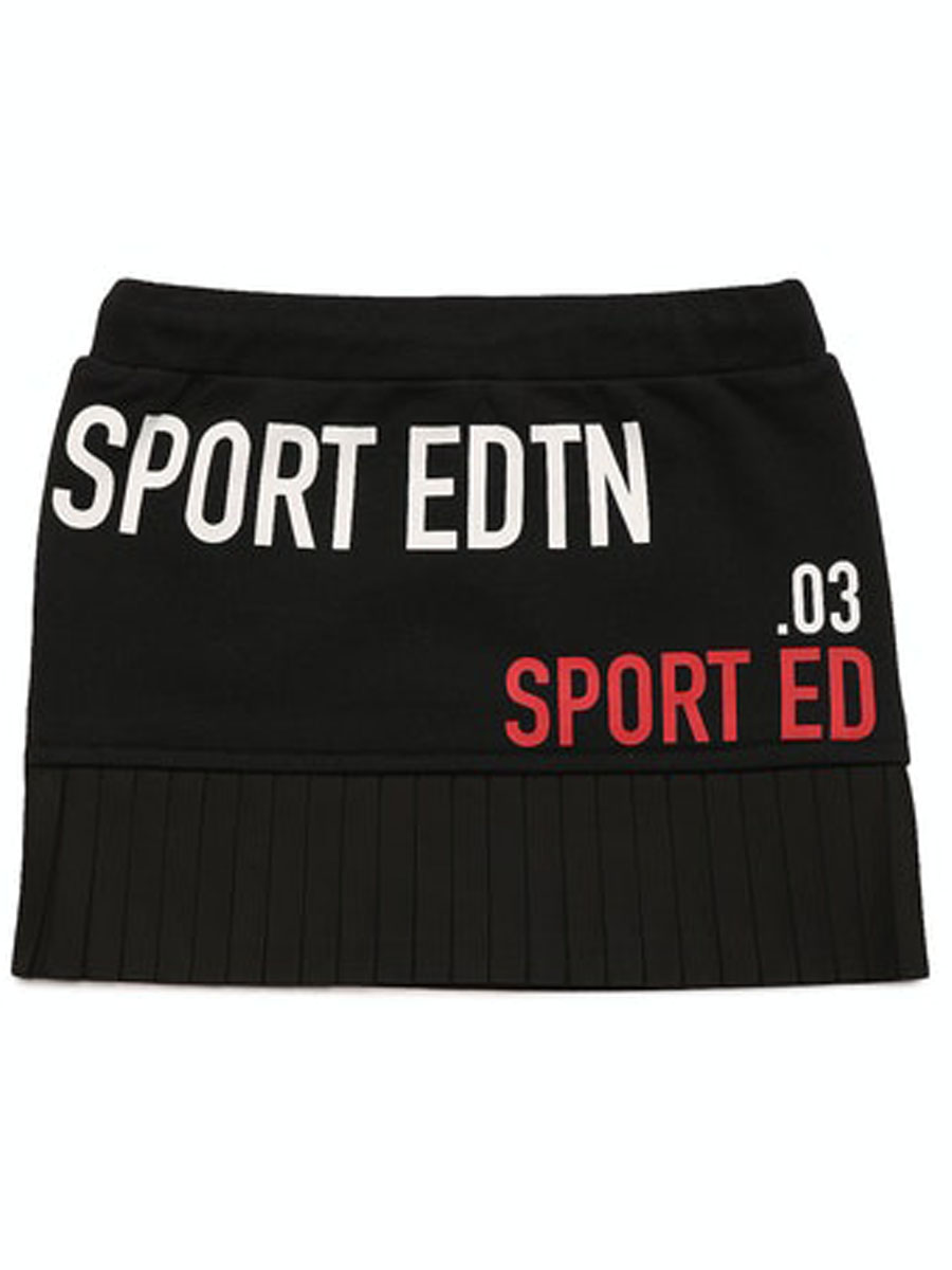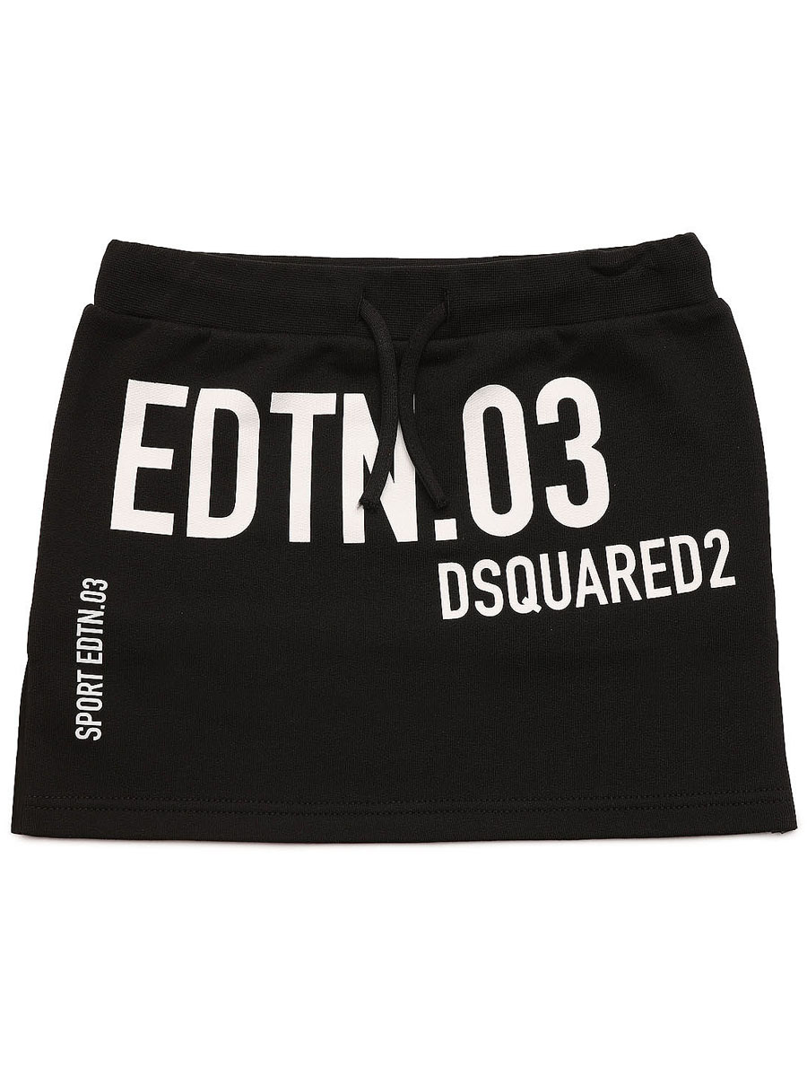 Dit toffe rokje van Dsquared heeft een tekst op de voorkant en achterkant. De achterkant heeft een plisse detail. Combineer de rok met het bijpassende shirt.