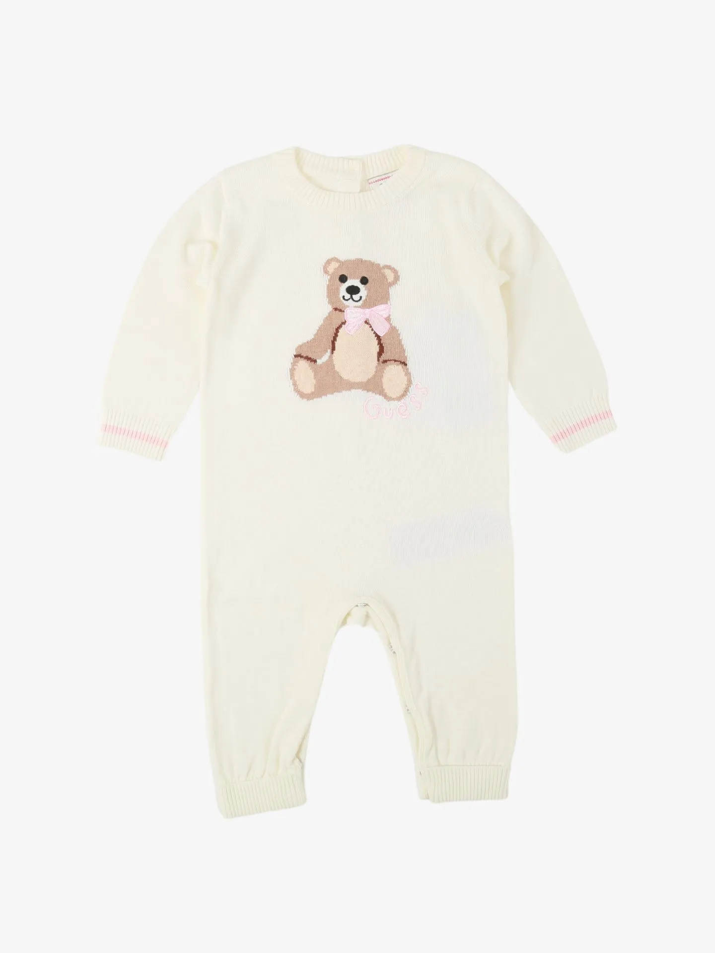 Het Guess Kids Boxpakje in de kleur Cream White is een fijngebreid pakje met beer. Het boxpakje heeft een knoopsluiting op de rug en aan de onderkant. Leuk om cadeau te geven!