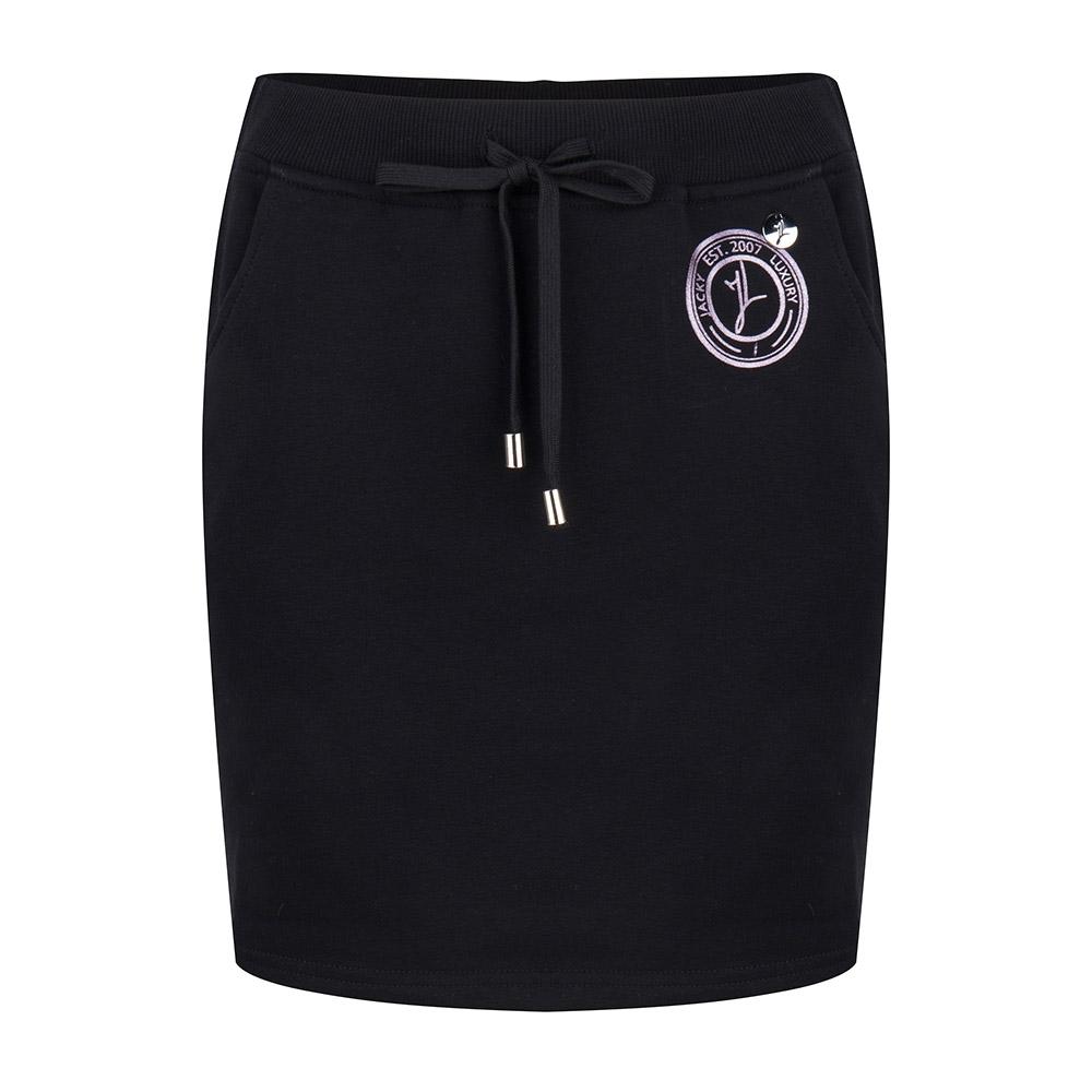 Rok met Jacky logo. De rok is een kort model van joggingstof met breed elastiek, twee steekzakken een Drawstring in de taille.