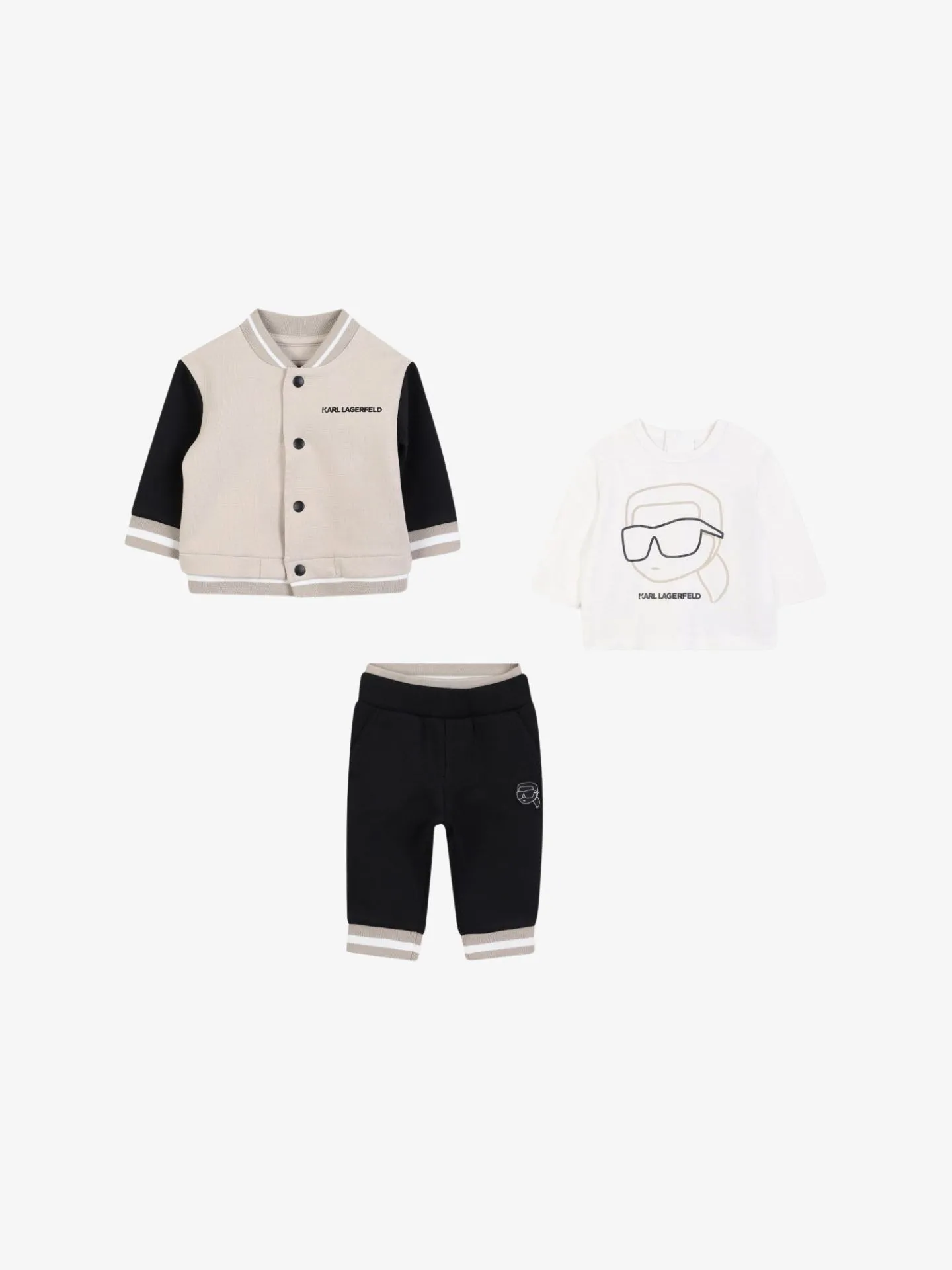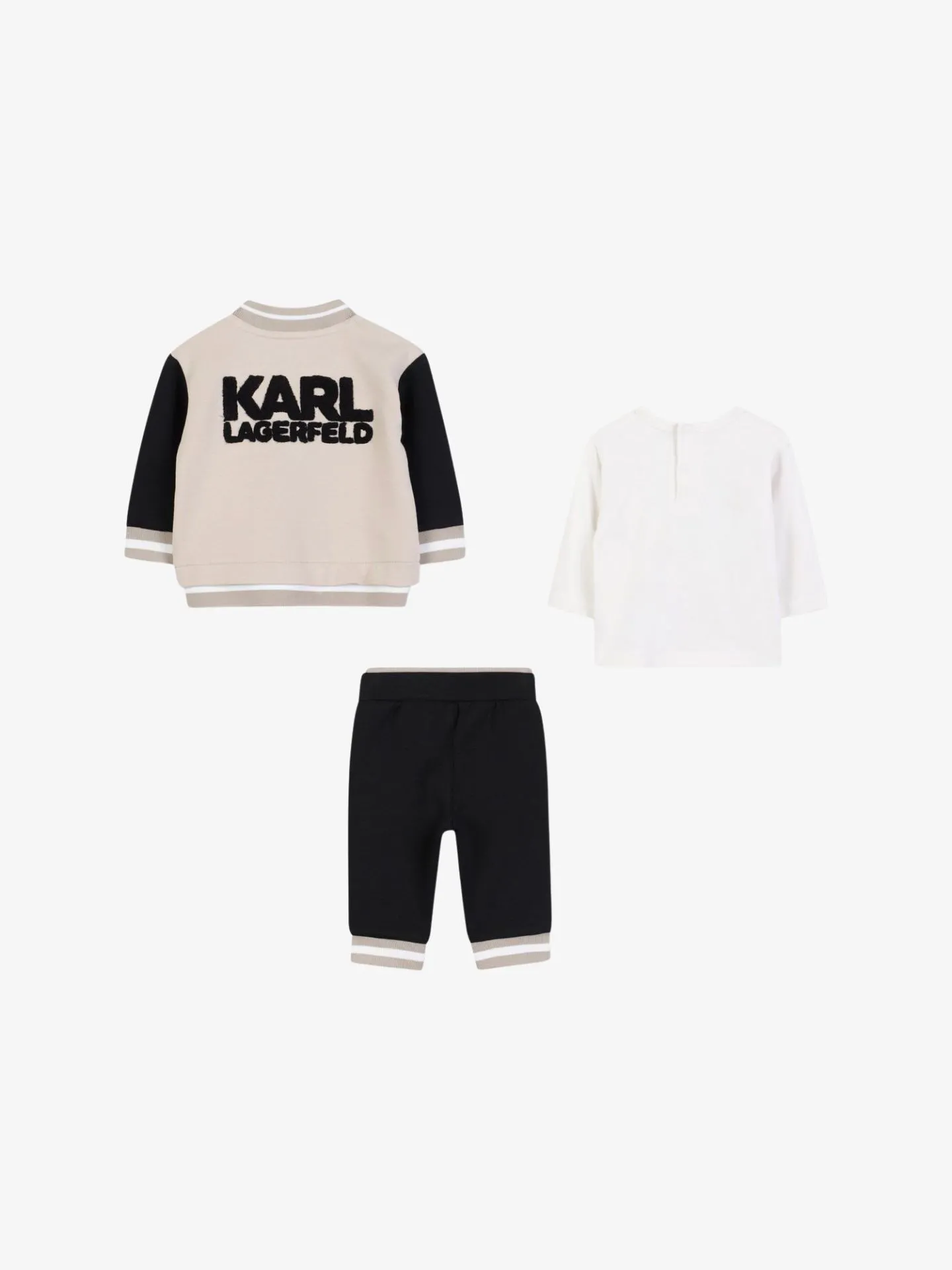 Sportieve looks en hedendaagse elegantie komen samen in deze joggingset van KARL LAGERFELD KIDS. Het is perfect voor een actief dagelijks leven en bestaat uit een vest met ritssluiting, een comfortabele broek en een bijpassend T-shirt. Een dynamisch en modern silhouet om zonder aarzeling aan te nemen.
