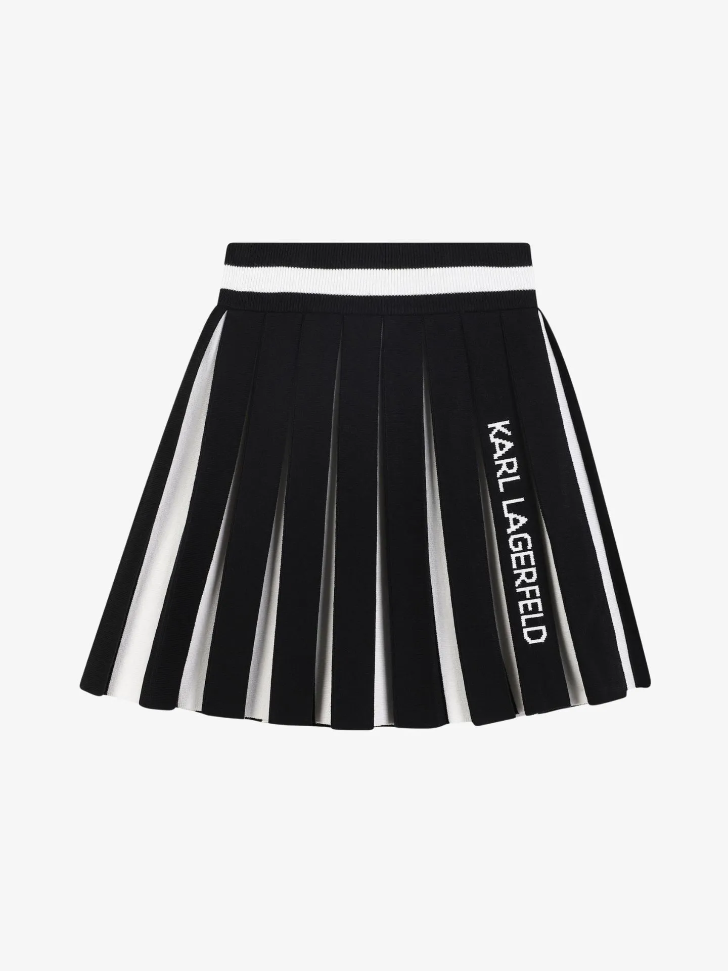 Deze geplooide rok in zacht breisel combineert comfort en couture spirit met brio. De korte, vloeiende pasvorm zorgt voor veel bewegingsvrijheid, terwijl de elastische tailleband zorgt voor een perfecte pasvorm. De jacquard met merknaam op de voorkant is een gedistingeerd teken van de wereld van KARL LAGERFELD KIDS, voor een chique en moderne look vanaf jonge leeftijd.