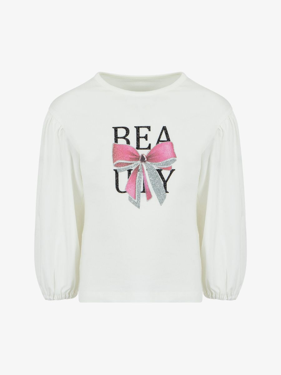 De Lapin House Longsleeve in Off White heeft een ballonmouw, een print met BEAUTY en een roze strik met zilveren glitters. Combineer met de bijpassende Lapin House Tulle rok.