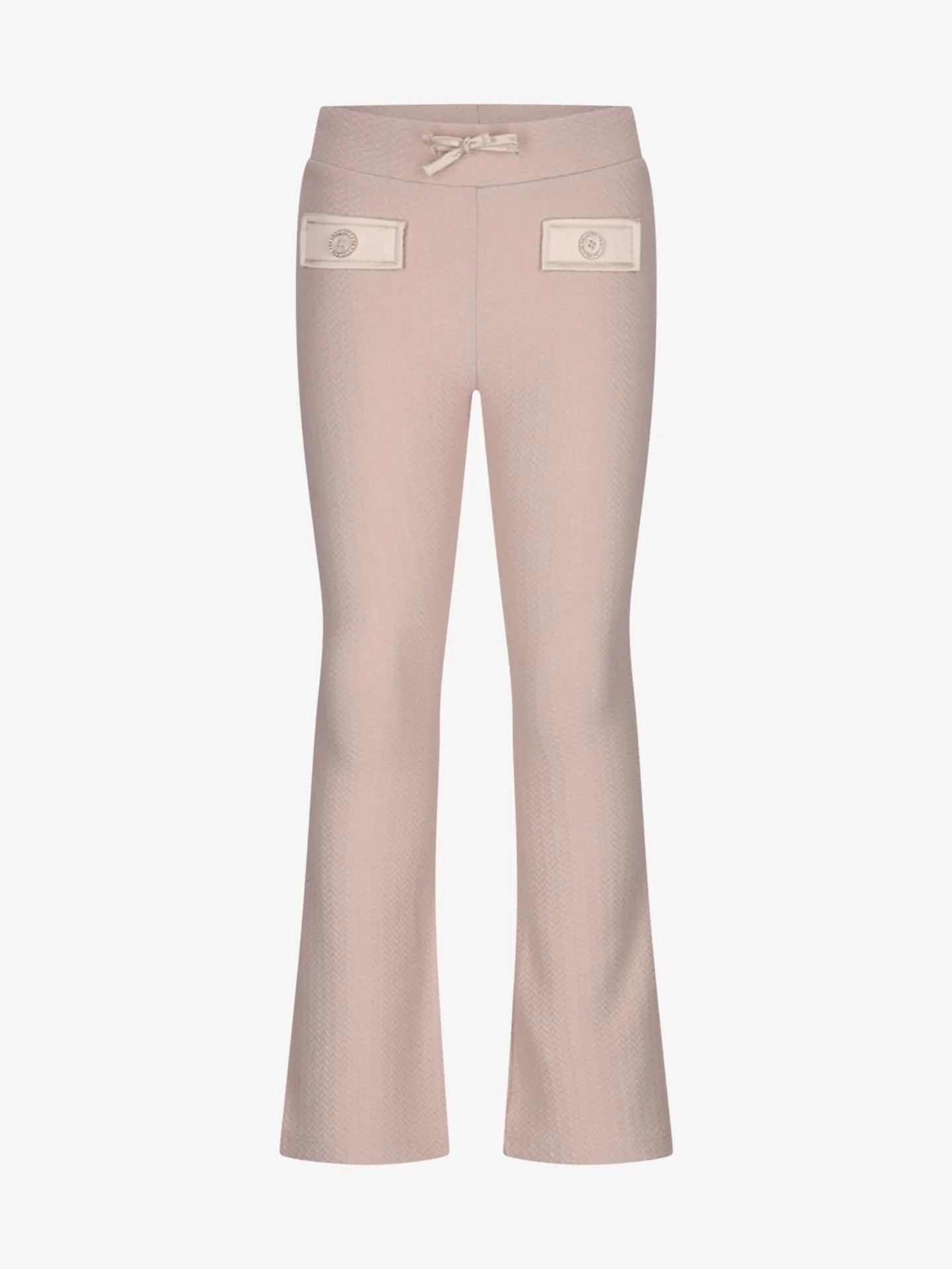 Le Chic flared leggings in een mooie, warme beige kleur, met een stijlvol extraatje: twee kleine klepjes, elk afgewerkt met een fraaie knoop. Een comfortabel en modieus item dat jouw meisje een bijzondere look geeft deze winter.
