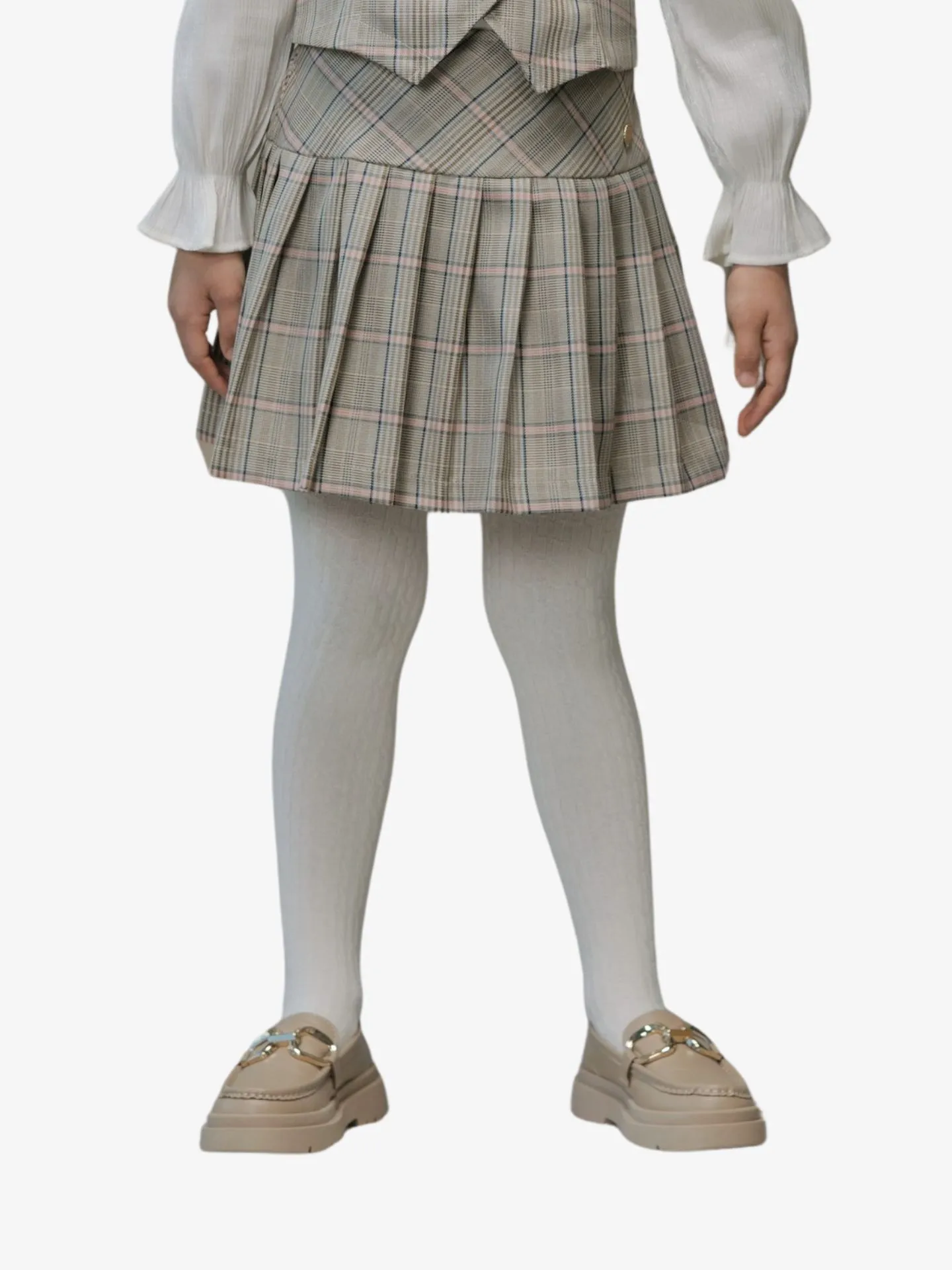 Le Chic plooirokje met heuppas, uitgevoerd in een leuke ruit die stoer, klassiek en trendy tegelijk is. Dit rokje combineert speelsheid met tijdloze stijl en is perfect voor meisjes die houden van een modieuze en eigenwijze look. Een veelzijdig item dat makkelijk te combineren is met verschillende tops en jasjes.