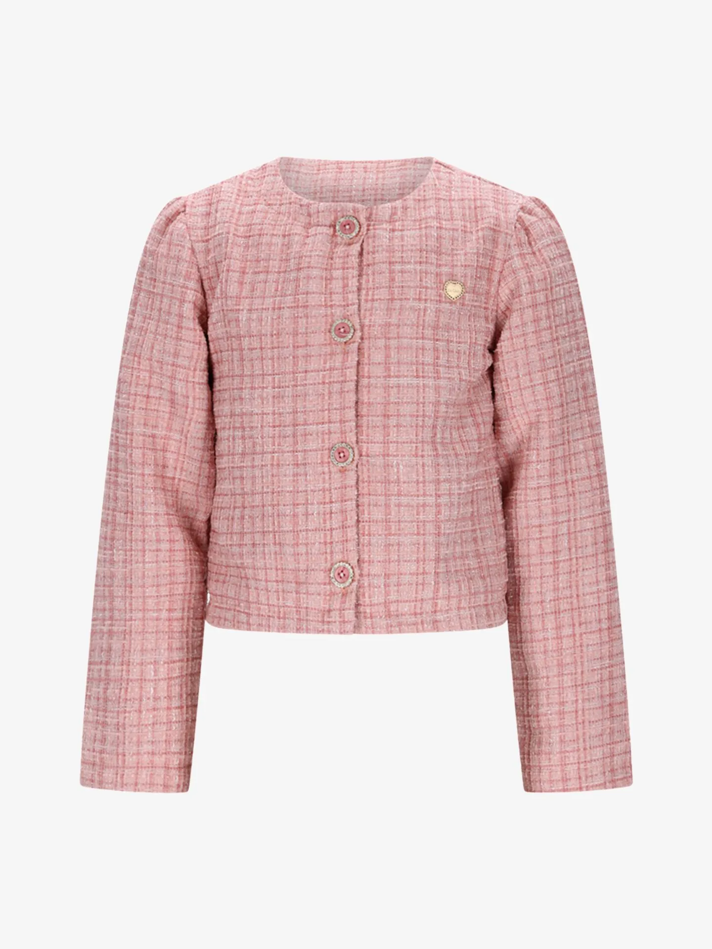 Le Chic roze tweed jasje van prachtige reliefstof, speciaal ontworpen voor binnen-gebruik tijdens koelere dagen. Dit jasje straalt klassieke elegantie uit en geeft elke outfit een stijlvolle finishing touch. Een mooie toevoeging aan de veelzijdige garderobe van jouw meisje.