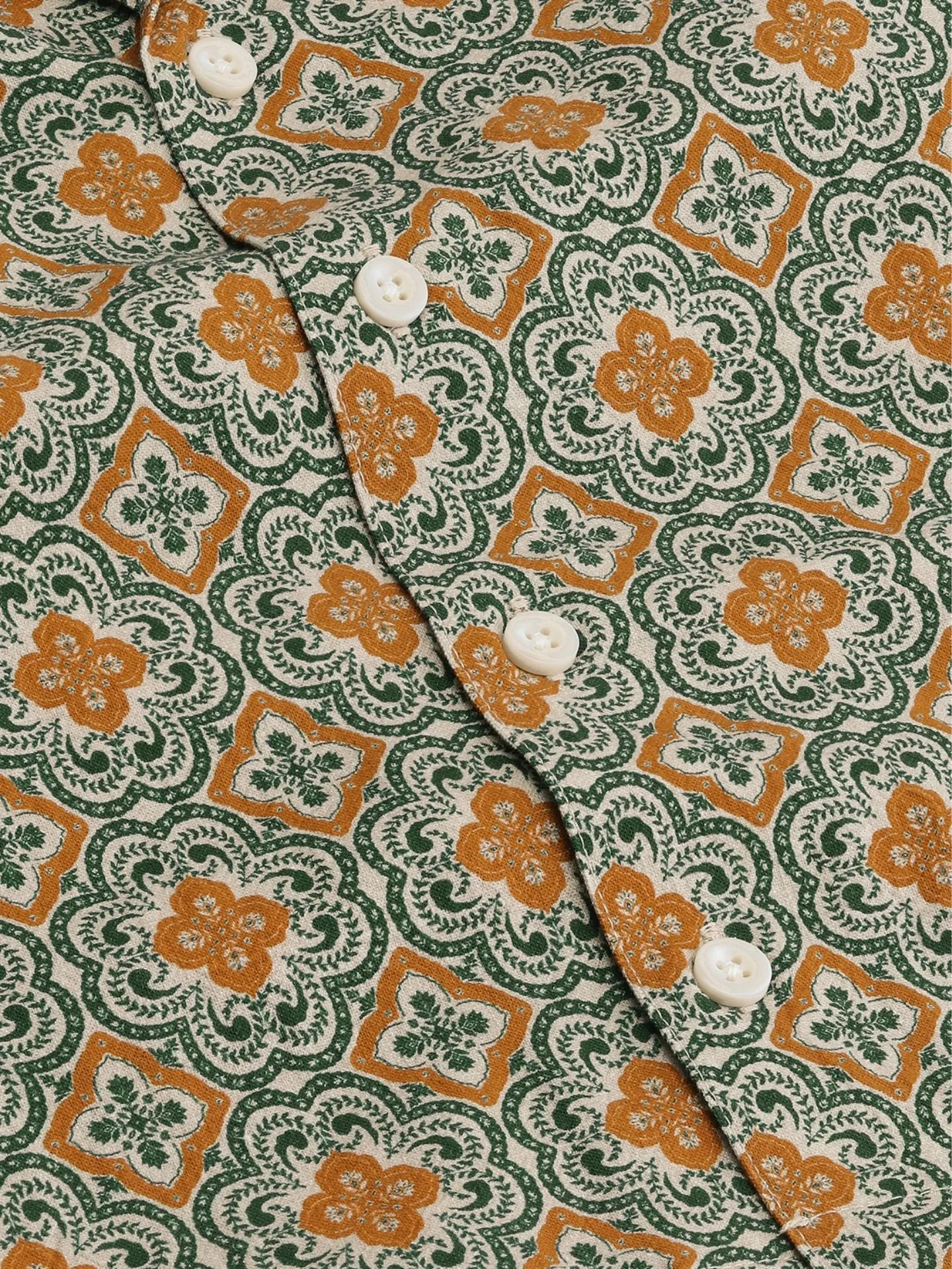 Blouse met Arabesque print van het Deense merk Les Deux. De blouse in de kleur Sea Moss Green heeft een platte kraag, korte mouwen en een knoopsluiting.