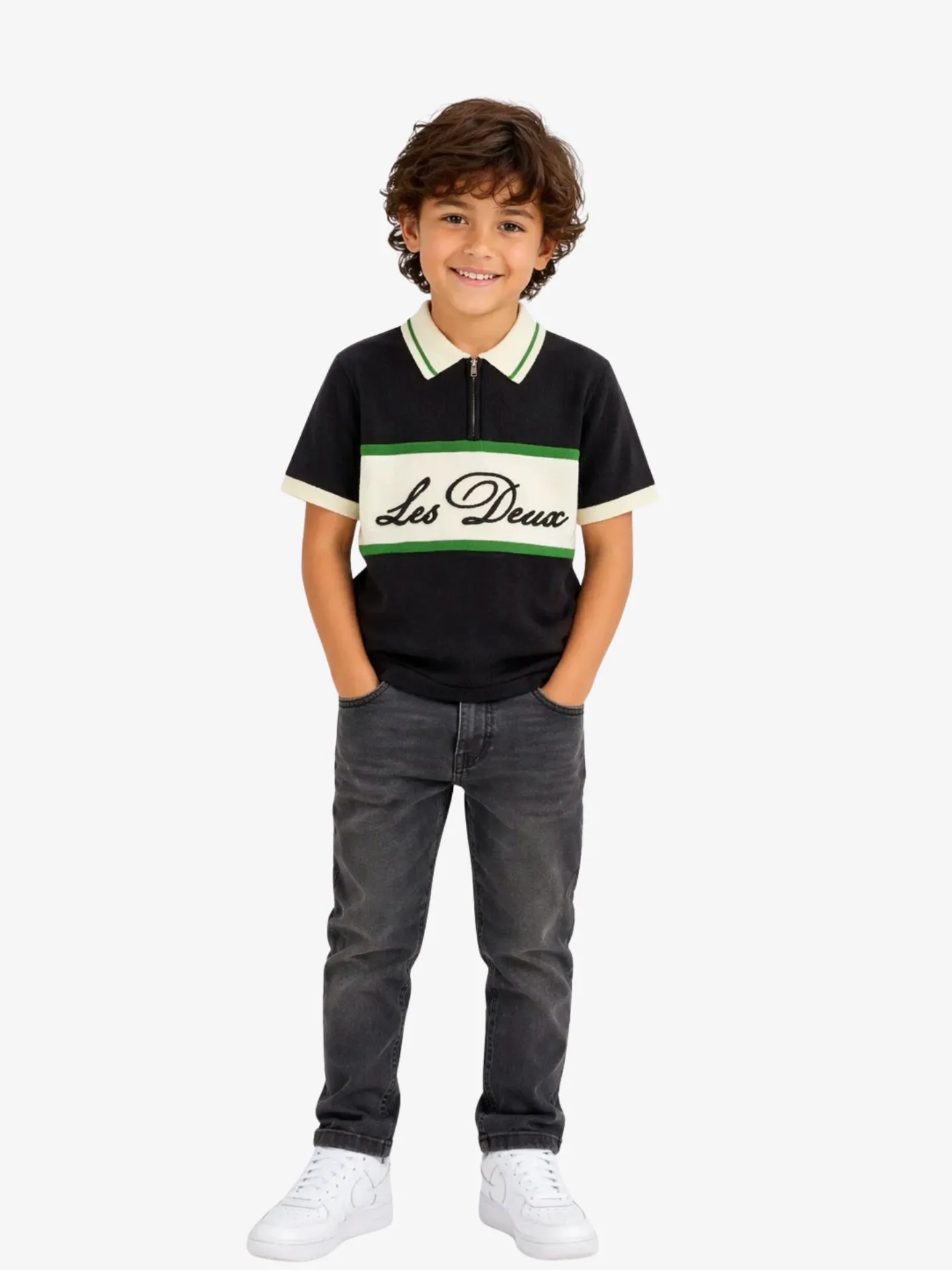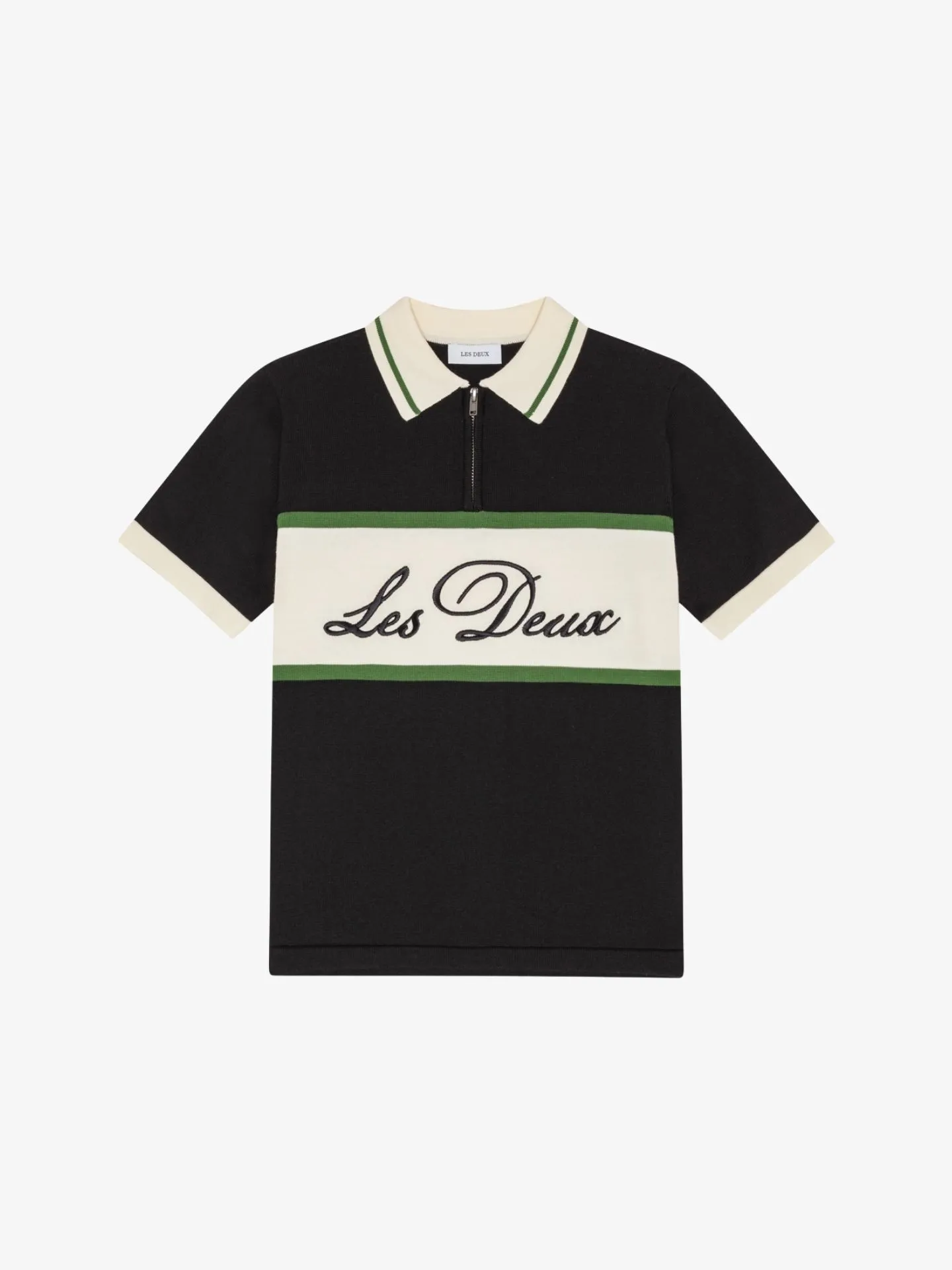 Fijn gebreide polo van het Deense merk Les Deux. De polo heeft een klassieke kraag, knoopsluiting, korte mouwen, offwhite sierbiezen en een logo aan de voorzijde.