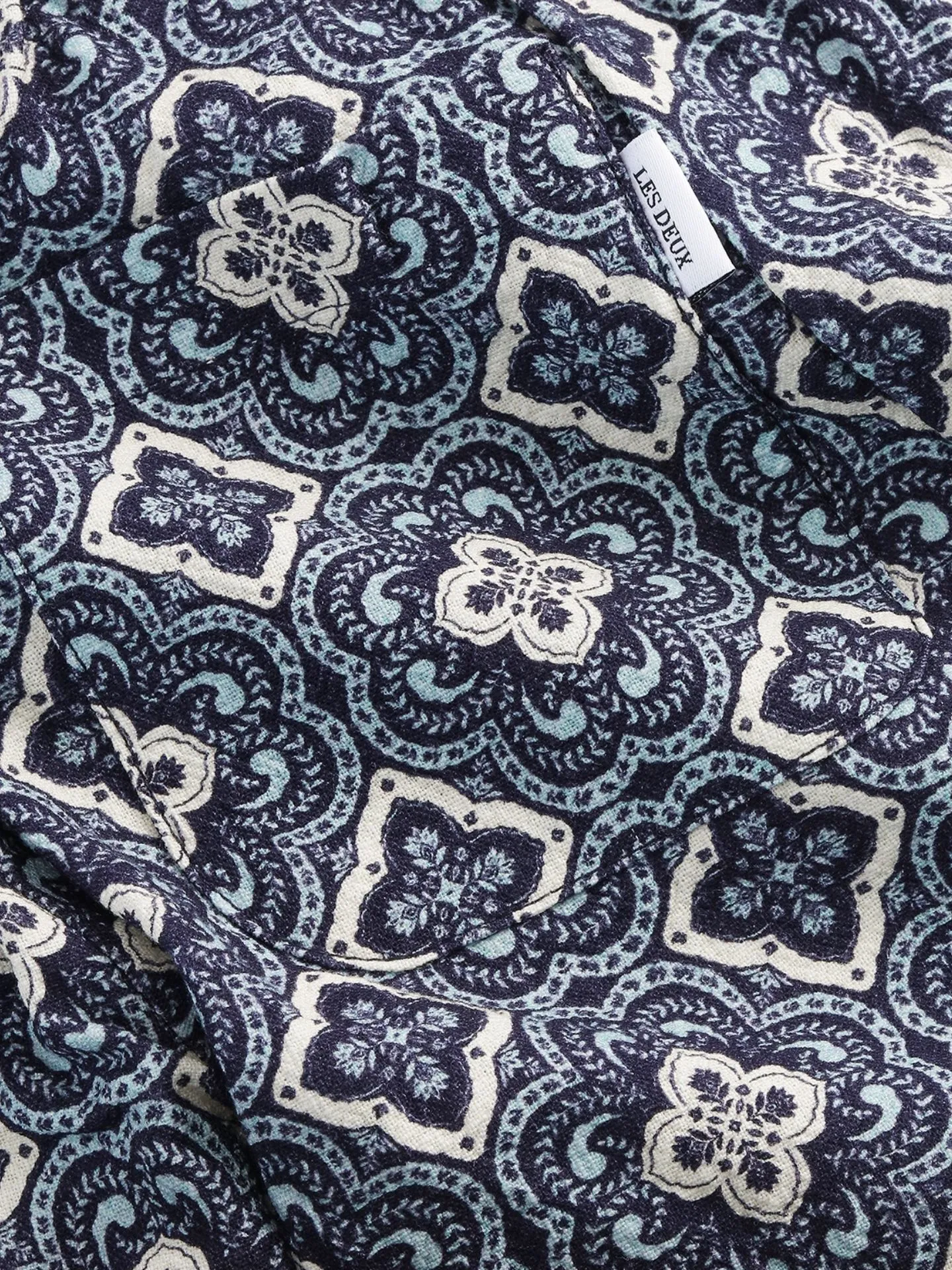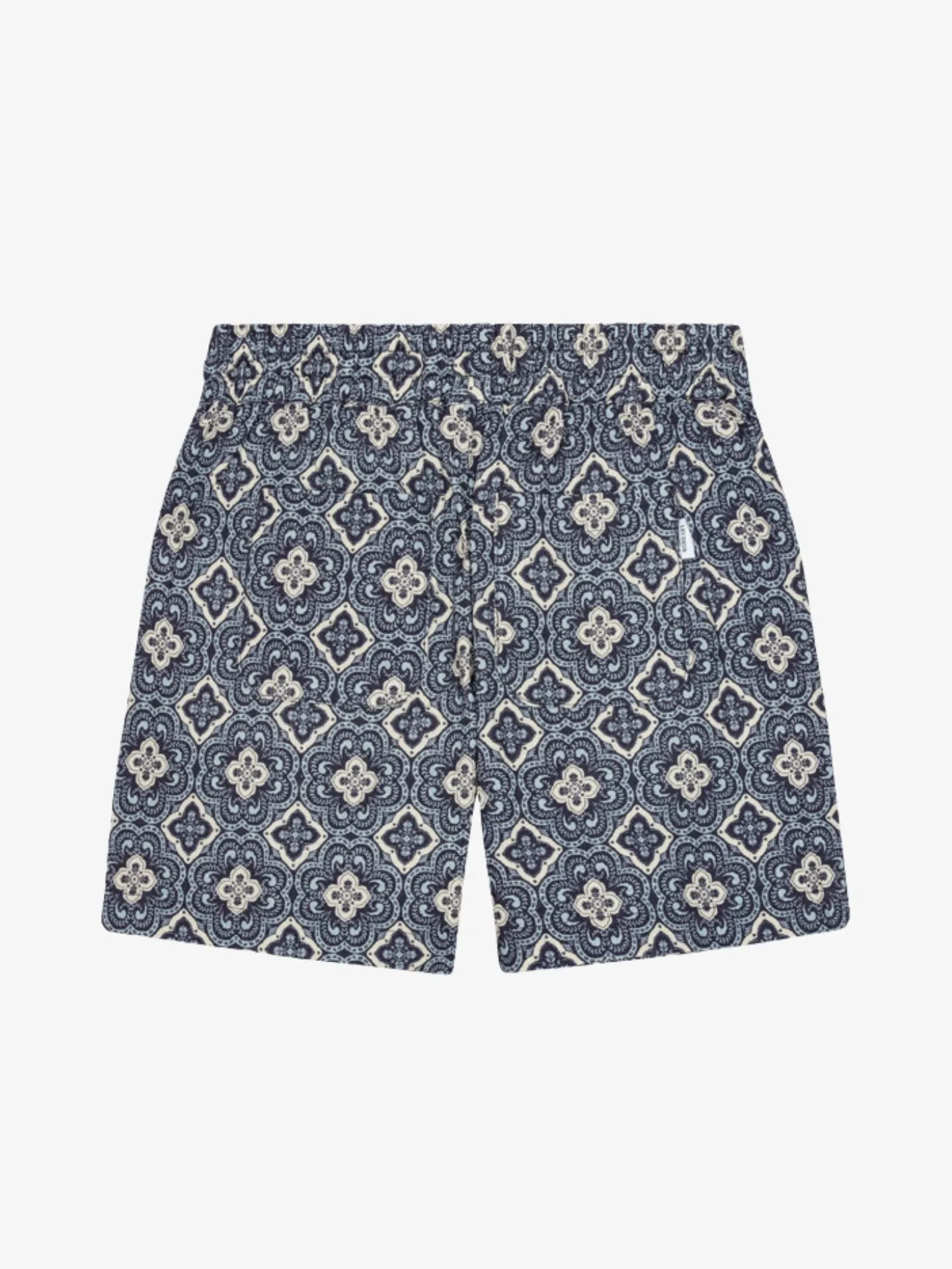 Zwembroek met Arabesque print van het Deense merk Les Deux. De zwembroek heeft een elastische tailleband, aantrekkoordjes en een klein merk logo op de linker broekspijp.