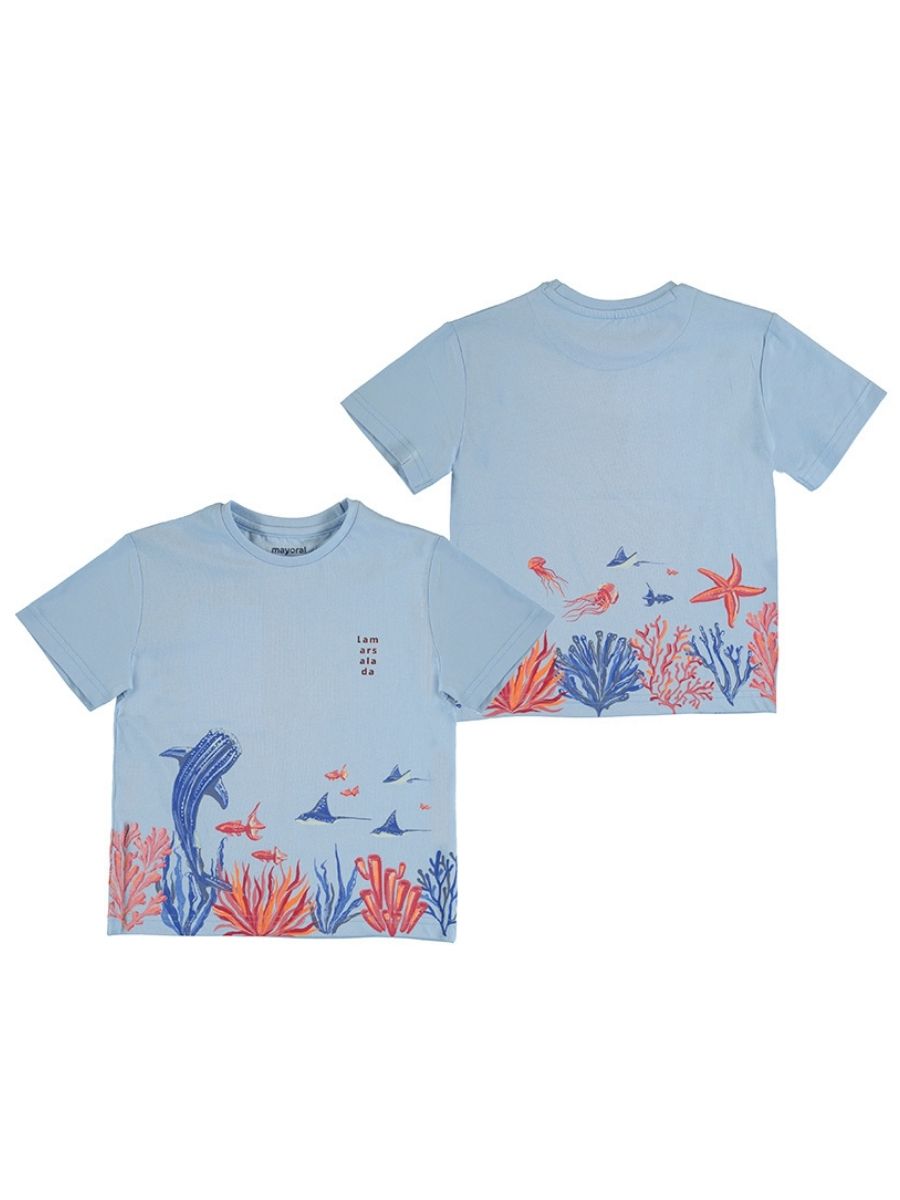 Mayoral zomerse t-shirt in de kleur licht blauw met print van de zee.