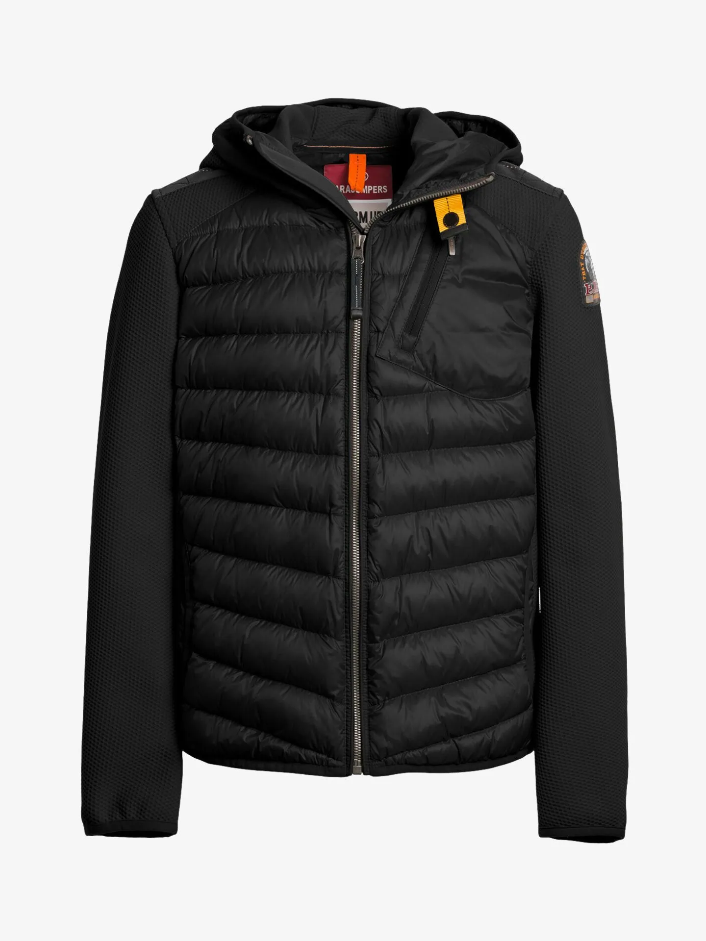 Nolan is een hybride kledingstuk met capuchon, afkomstig uit de bekende Warm Up-familie. Het combineert stretch polyester met een gebreide honingraatstructuur met met dons gevuld semi-glanzend nylon tafzijde. Sportief en veelzijdig, verkrijgbaar in verschillende kleuren.