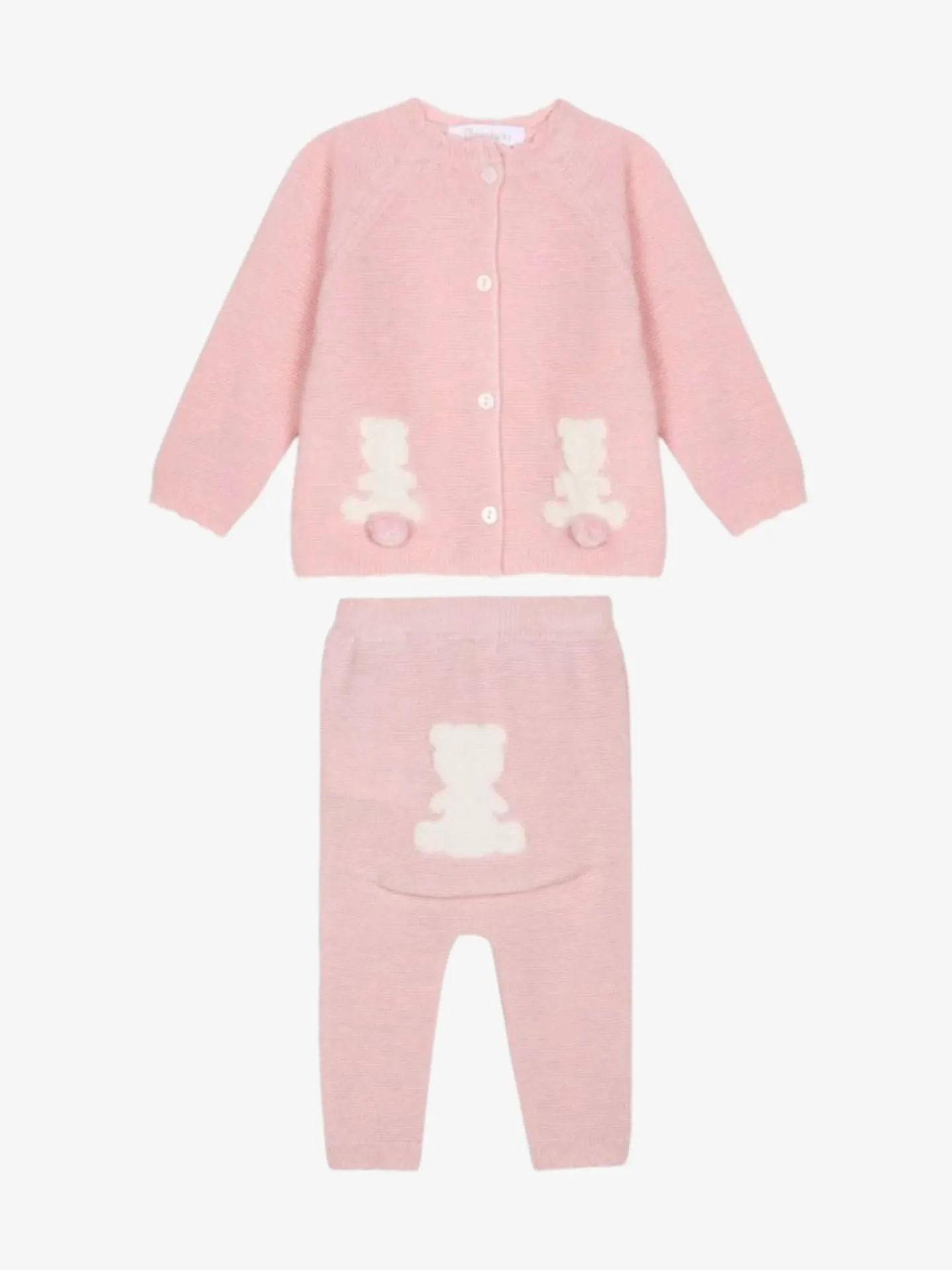 Super schattig roze gebreid vestje met geborduurde beren en pompons op de voorkant. Vestje is voor 25% van merinowol waardoor hij heerlijk warm is voor de winter.