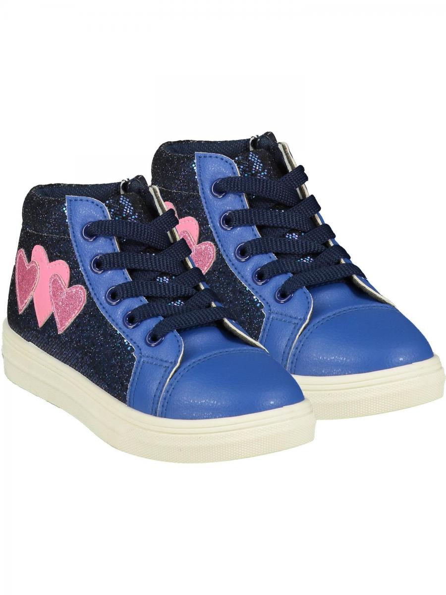 Adee kinderschoenen in de kleur blauw en donkerblauw en roze hartjes.