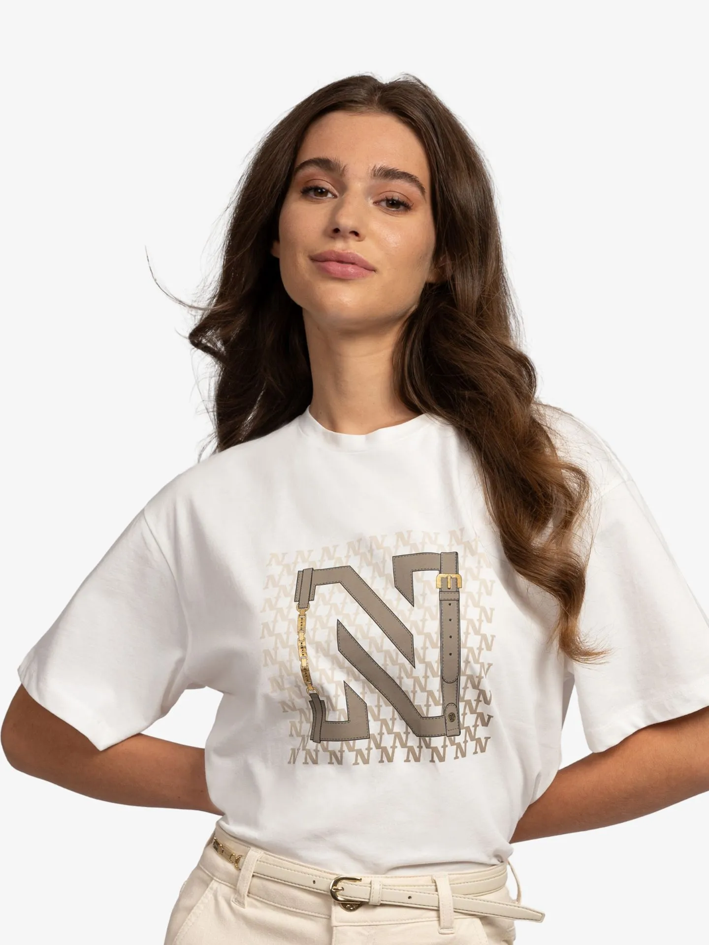 Basic T-shirt met een NIKKIE logo opdruk, een ronde hals en een normale pasvorm. Combineer samen met een jeans, pantalon of rokje uit de Nikkie collectie.