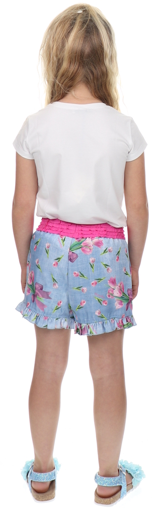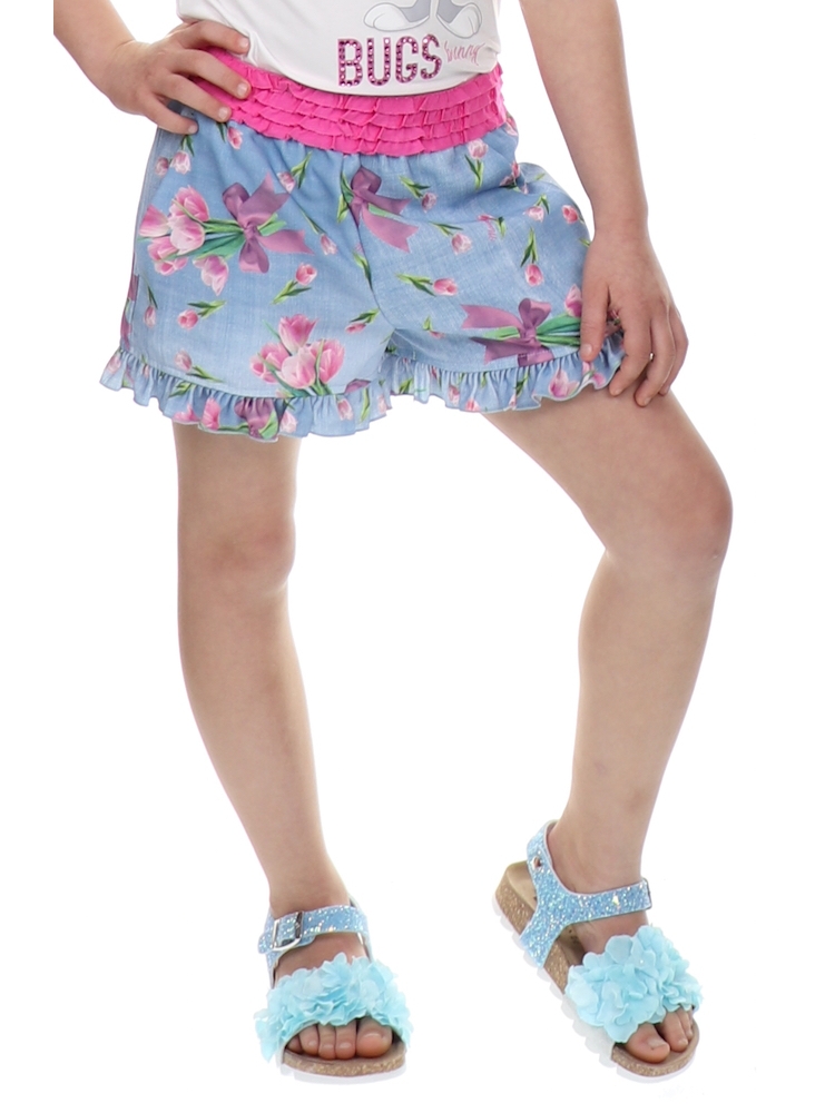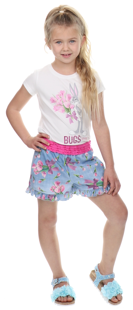 Super schattig! Dit shortje met bloemenprint en ruffles aan de boven en onderkant. Het shortje is te combineren met de Bugs Bunny collectie. Materiaal: 100% Polyester Whitney is 124 cm en draagt maat 6J Monnalisa kinderkleding, Monnalisa kids sale, Monnalisa sale