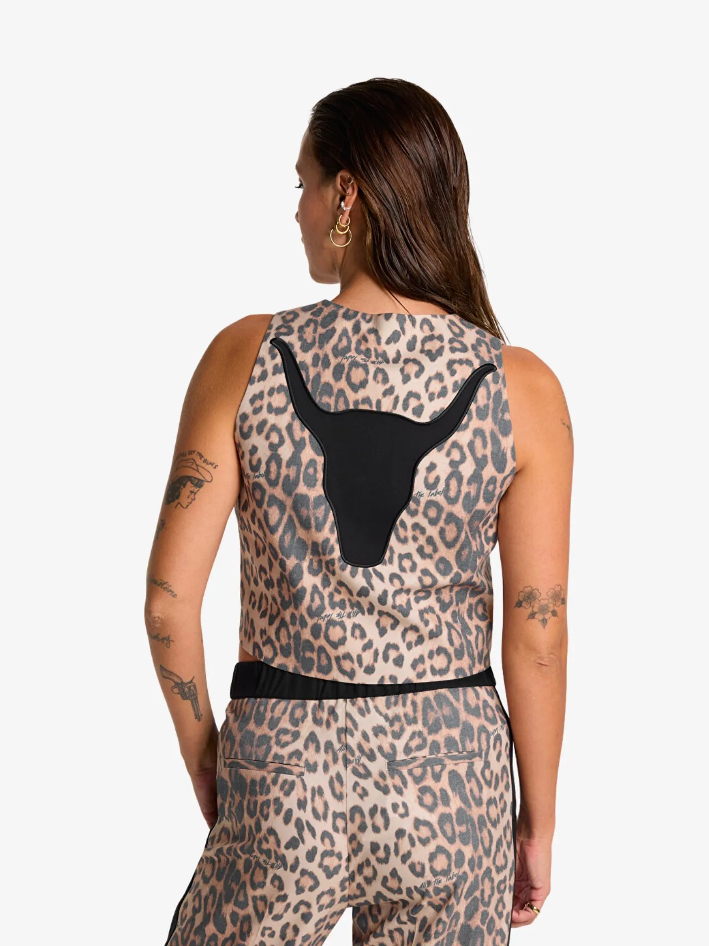 De Alix the Label Leopard Gilet uit de 10 years jubileum collectie heeft de Alix bull op de achterkant en een 10 YEAR label op de zijkant. Combineer de Alix gilet samen met de bijpassende broek en blazer.