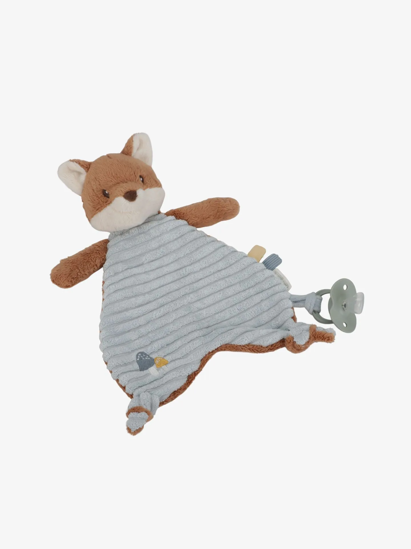 Een knuffel voor geborgenheid! Dit knuffelvriendje staat klaar om lekker te knuffelen en je te troosten, waar en wanneer je maar wilt. De vriendelijke vos zal je geruststellen met zijn magische zachtheid en geeft je een warme omhelzing wanneer je een vriendje nodig hebt. Het lichaam van de vos is een heerlijke zachte doek met speelse labels, een Forest Friends borduursel en twee knopen die kleine handjes makkelijk vast kunnen pakken. Met de handige lus kun je er eenvoudig een speentje aan vast te maken, zodat het altijd binnen handbereik is. Afmetingen: 23x8x31 Leeftijd: 0+ maanden