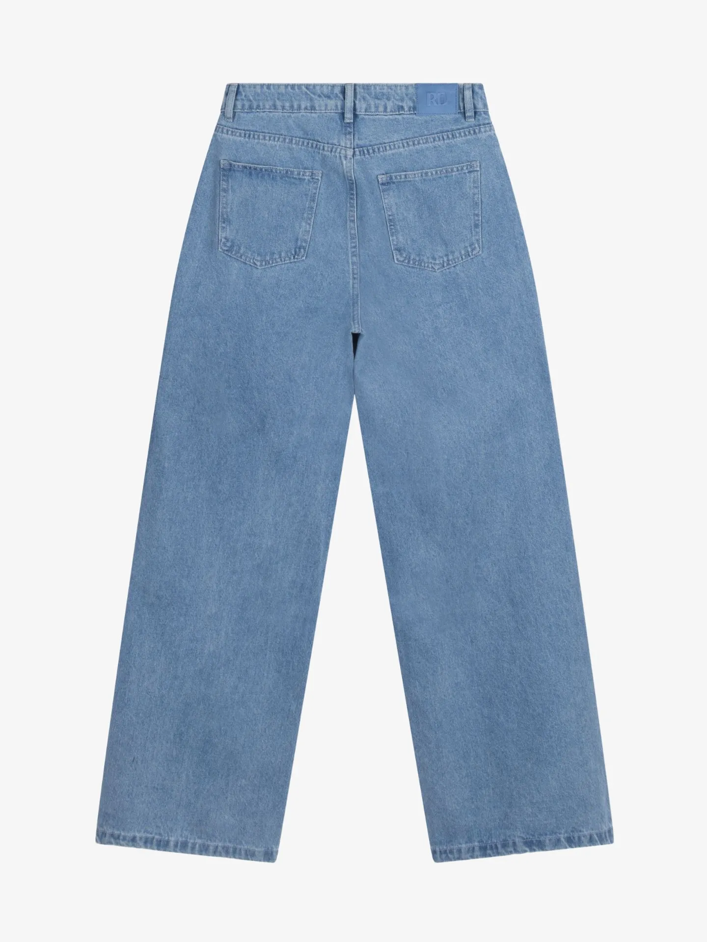 Jeans met wijde pijpen. Verrijkt met parels over de hele jeans. Gemaakt van een denimstof van een katoenmix. Met onze RFND-logopatch op de rug. Combineer met de ADELINE blouse voor de perfecte look!