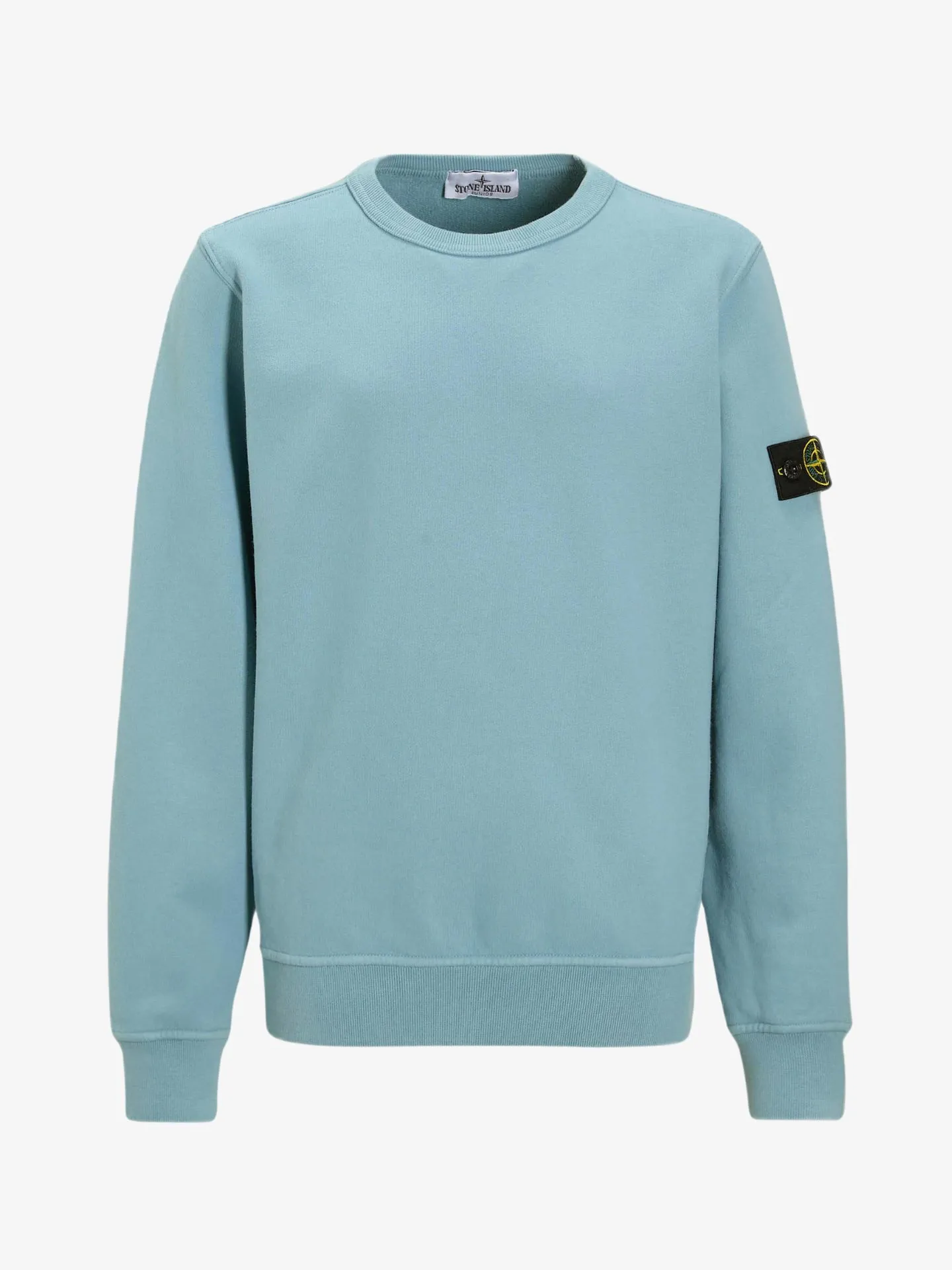 Sweatshirt met ronde hals van biologisch katoenfleece met geribbelde halslijn, zijbanden, manchetten en onderband. Garment dyed. Combineer met een jeans.