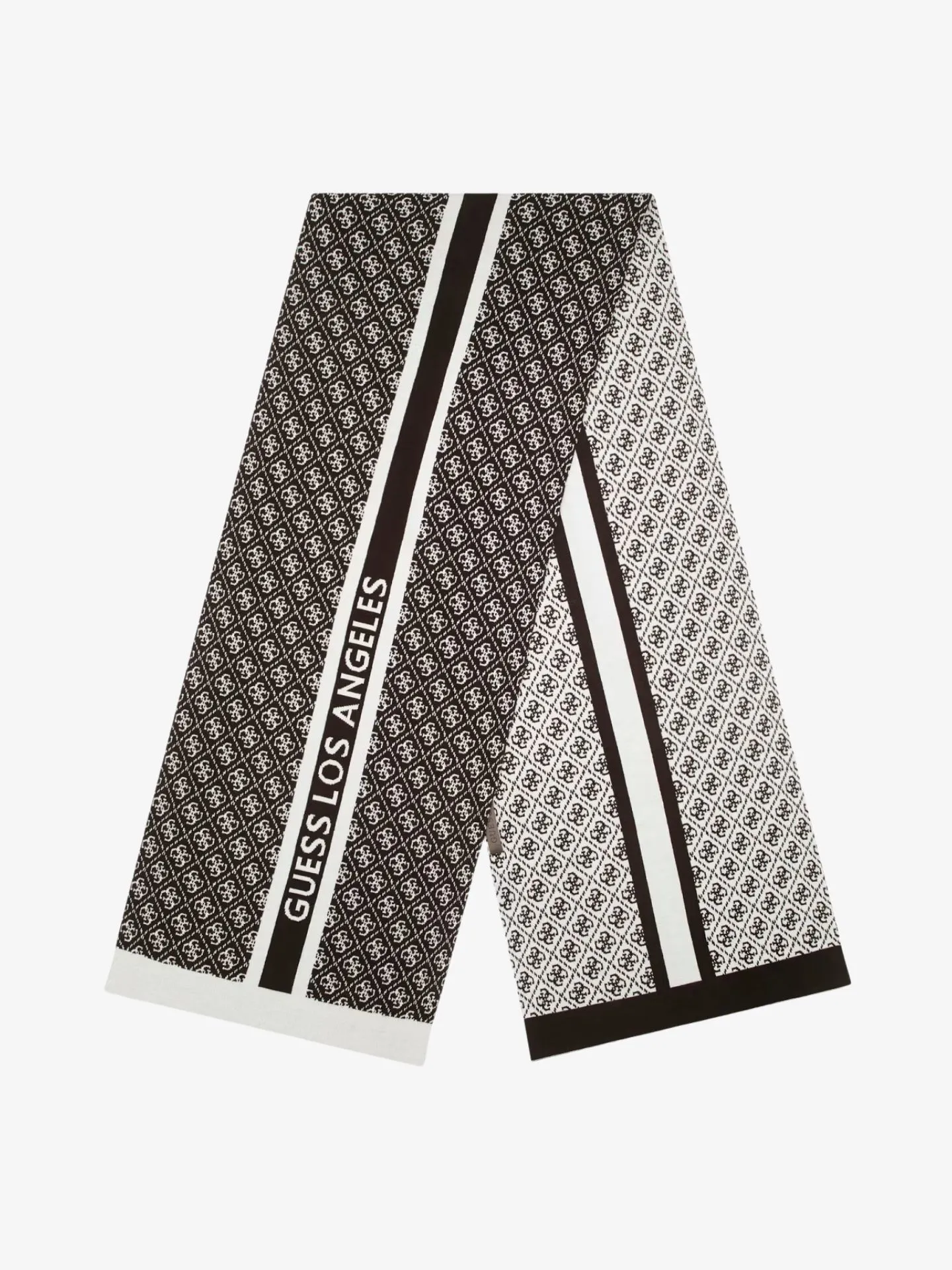 Sjaal van gemengde stretchwol van het Amerikaanse merk Guess. All-over 4G-logo. Geborduurd logo op de gestreepte middenlijn. Afmetingen: 168x32 cm / 66.1x12.6 inch.