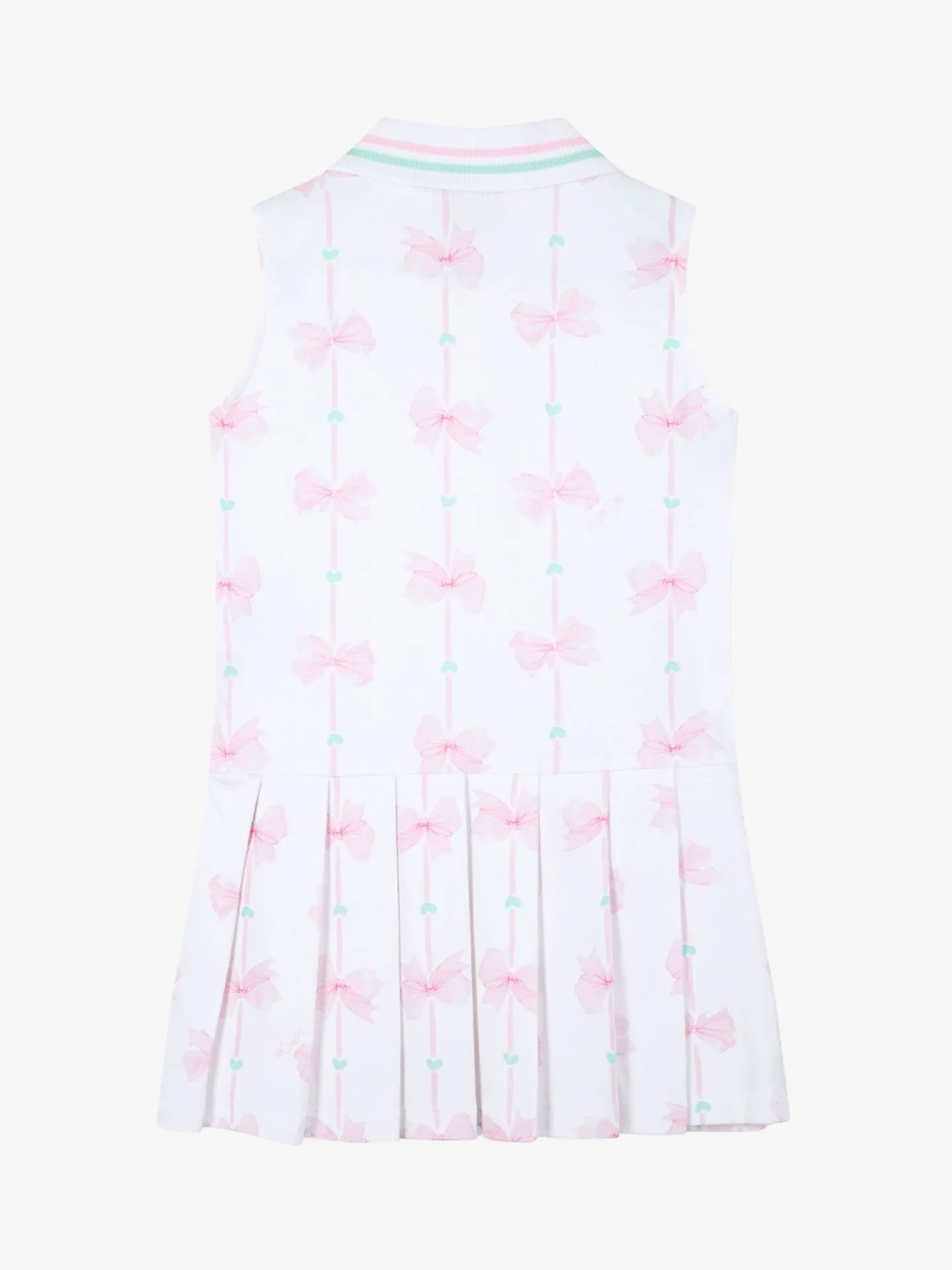 De Raven Tennisjurk is de perfecte outfit voor zonnige zomerdagen. De jurk heeft een all-over strikjesprint, een verlaagde taille met een geplooide rok en twee schattige applicatiestrikjes voor een speelse finishing touch.