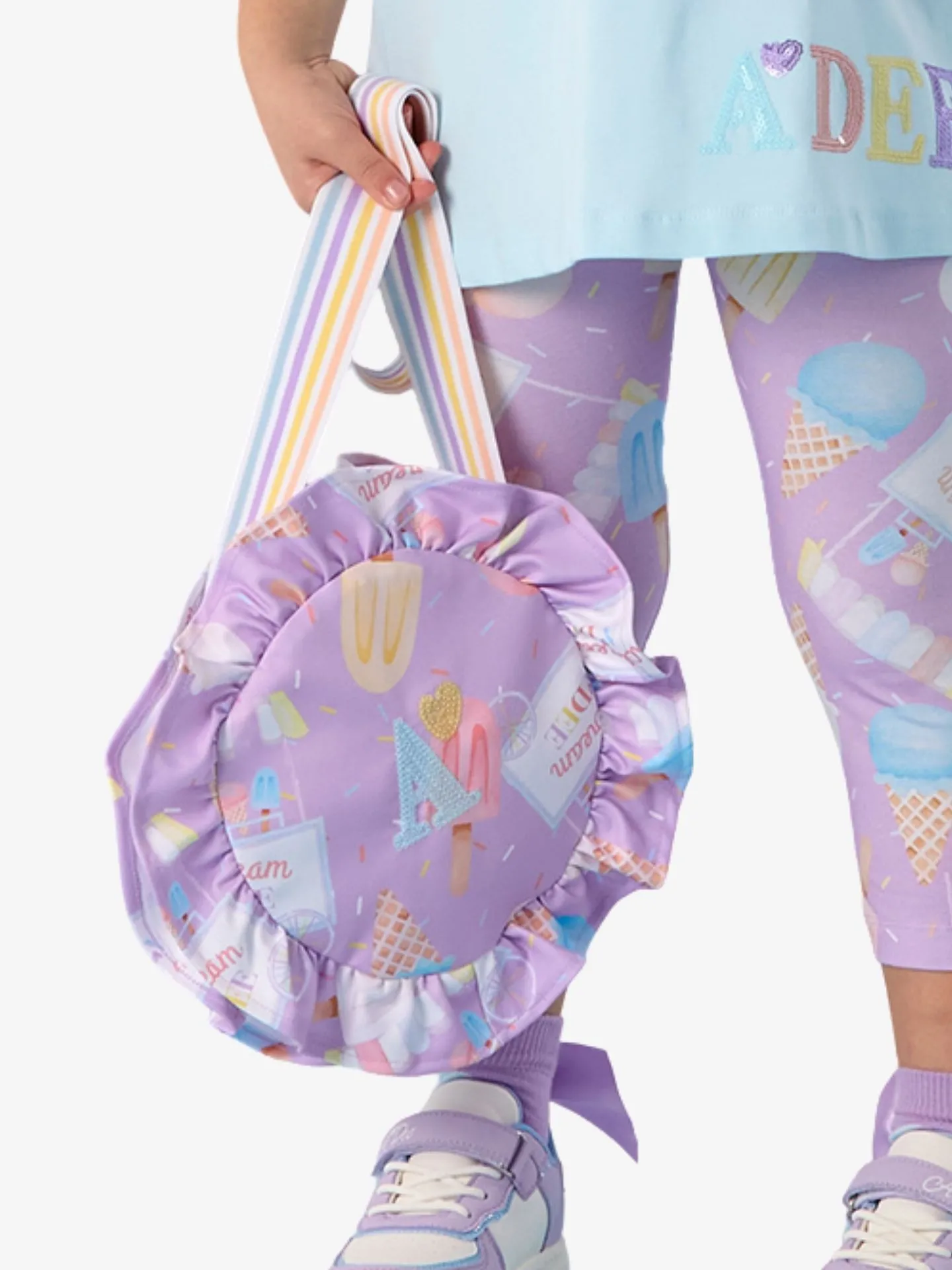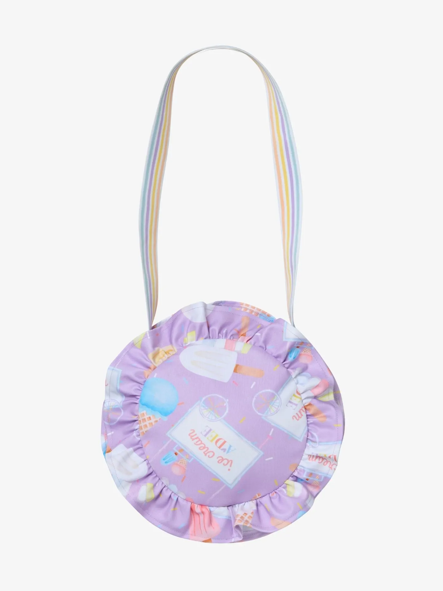 Sunni crossbodytas met ijsjesprint van het Britse merk Adee. De tas heeft ruches, ritssluiting en een gestreepte schouderband. Combineer de tas met de andere items van de Lila Dreams lijn voor een complete look.